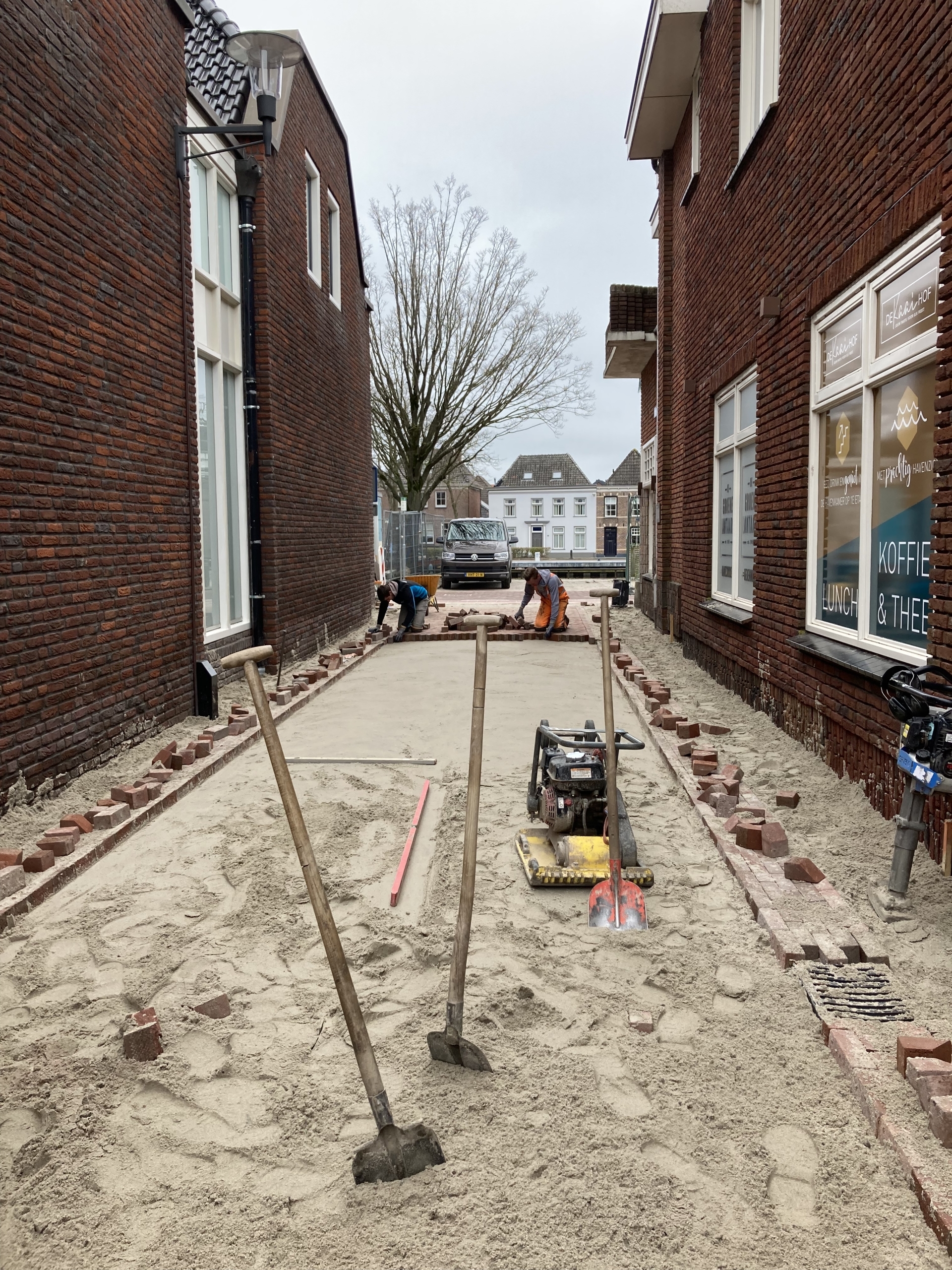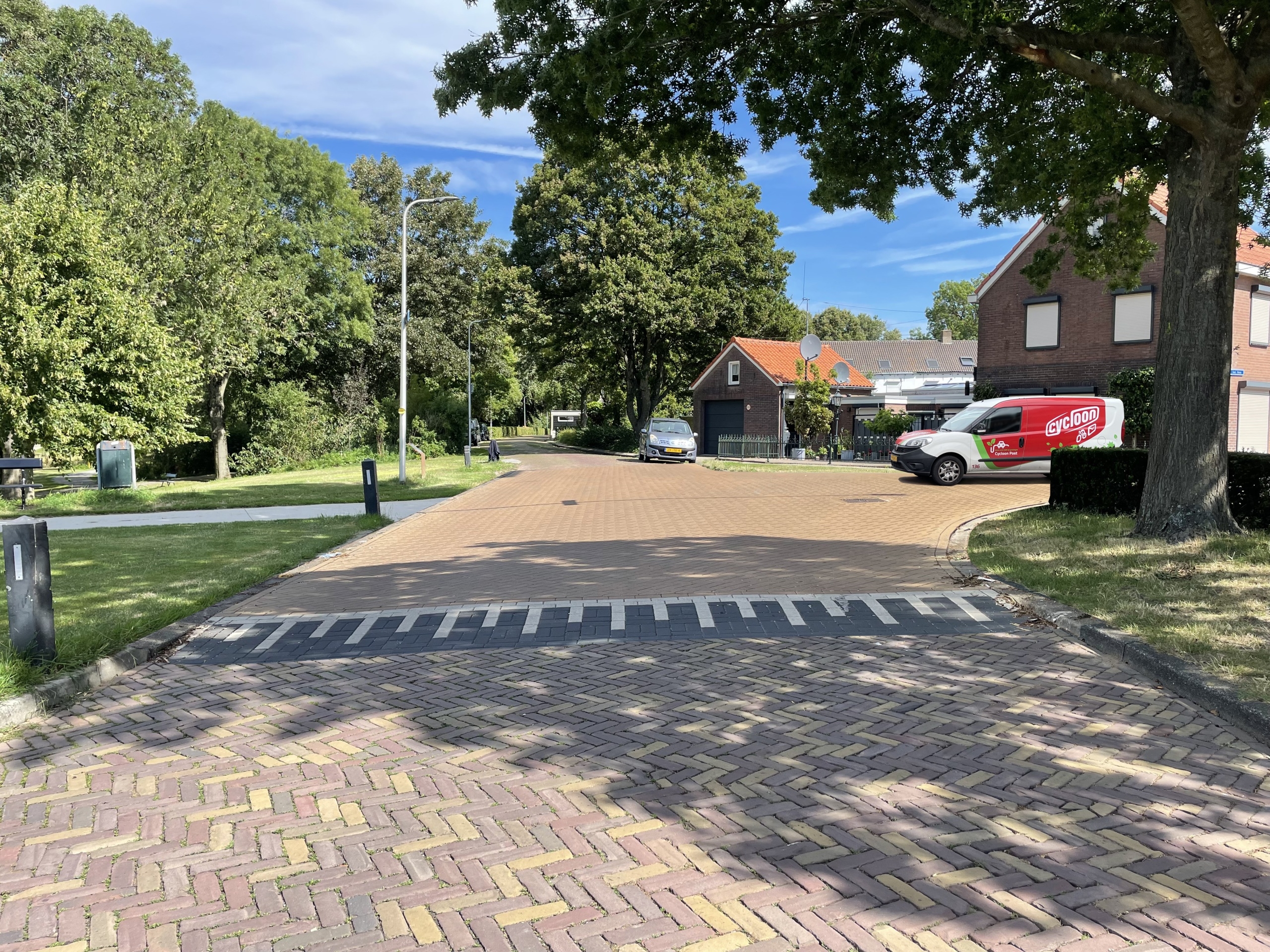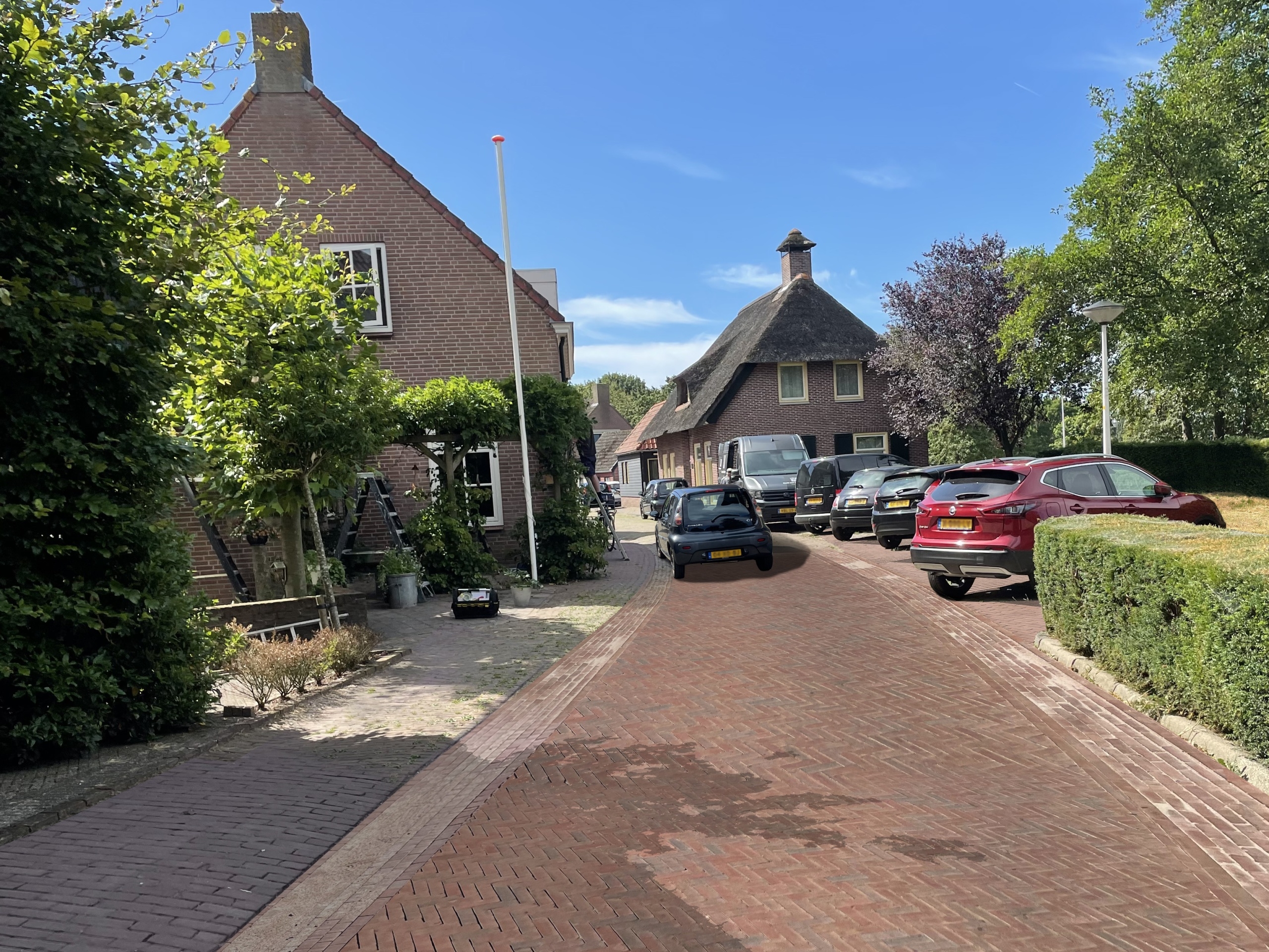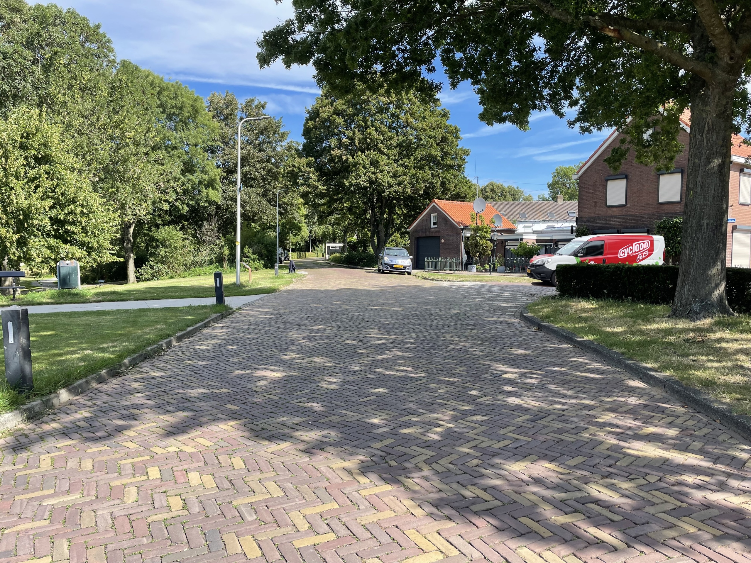 - Nieuwe rijbaan met rood/bruine straatbakstenen