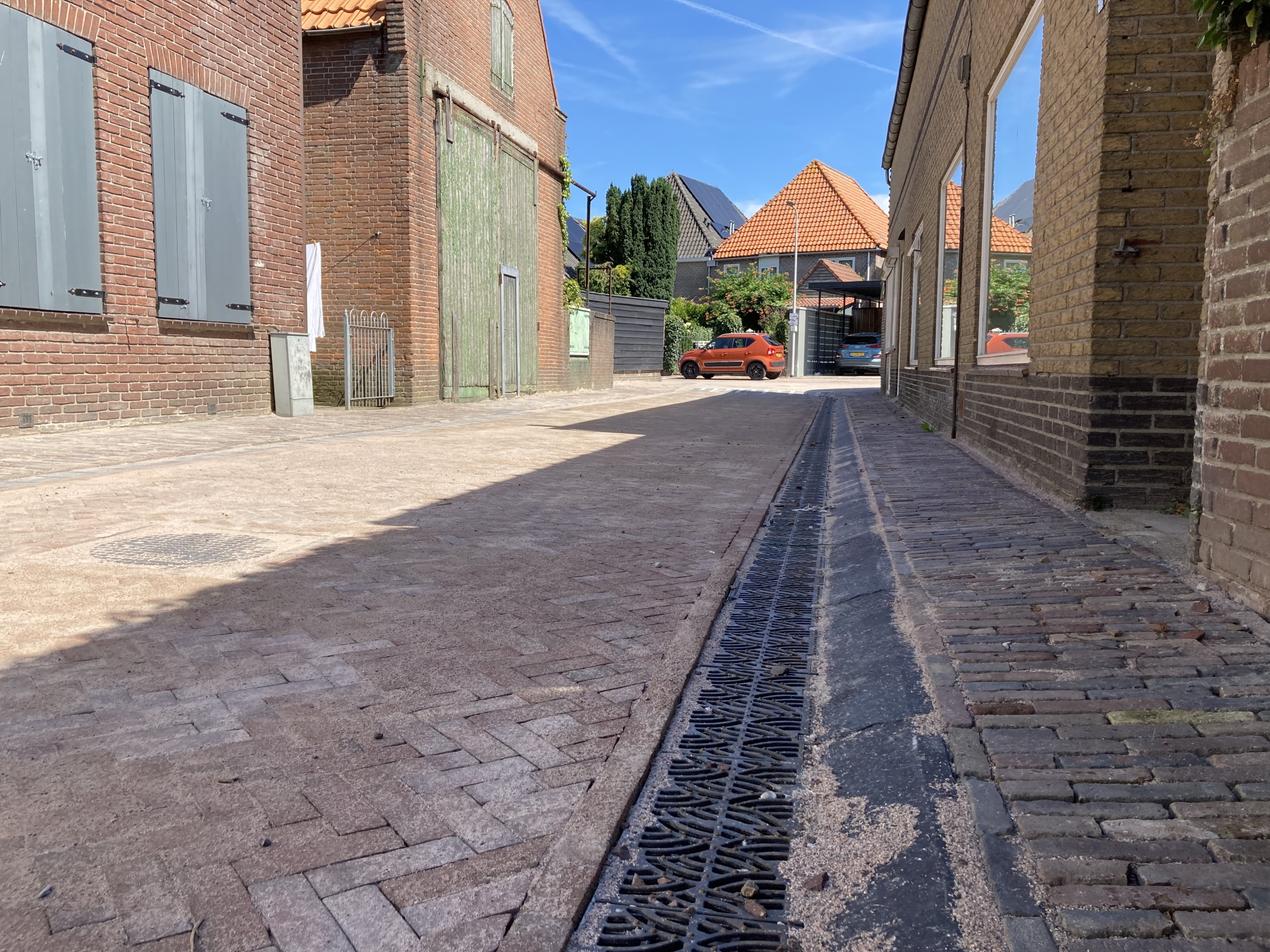 Door een nieuwe bestrating en het gebruik van lijngoten in deze bestrating vloeit het regenwater straks af naar de nieuwe riolering. Dit moet de overlast van water bij extreme regenbuien verminderen.