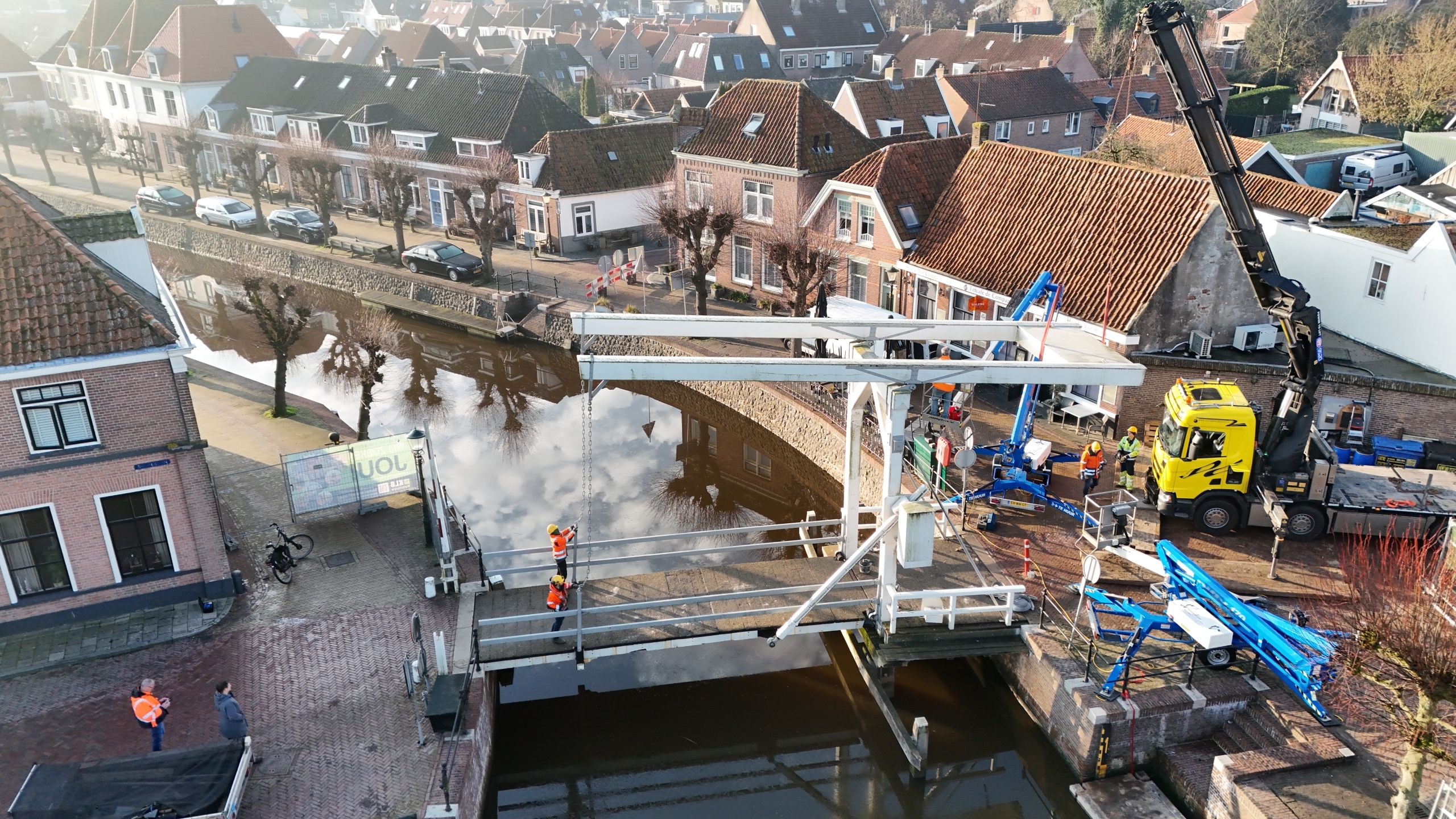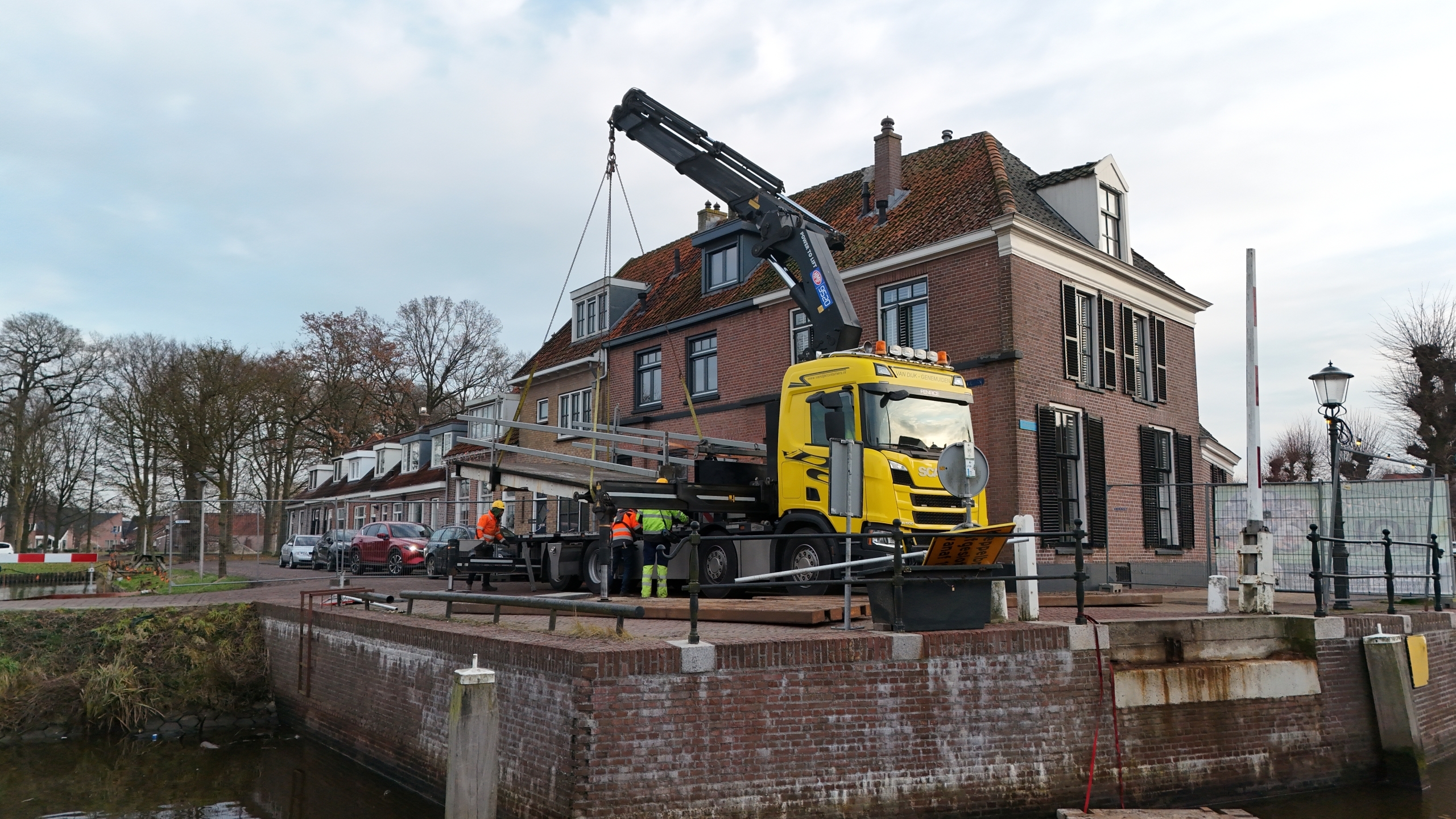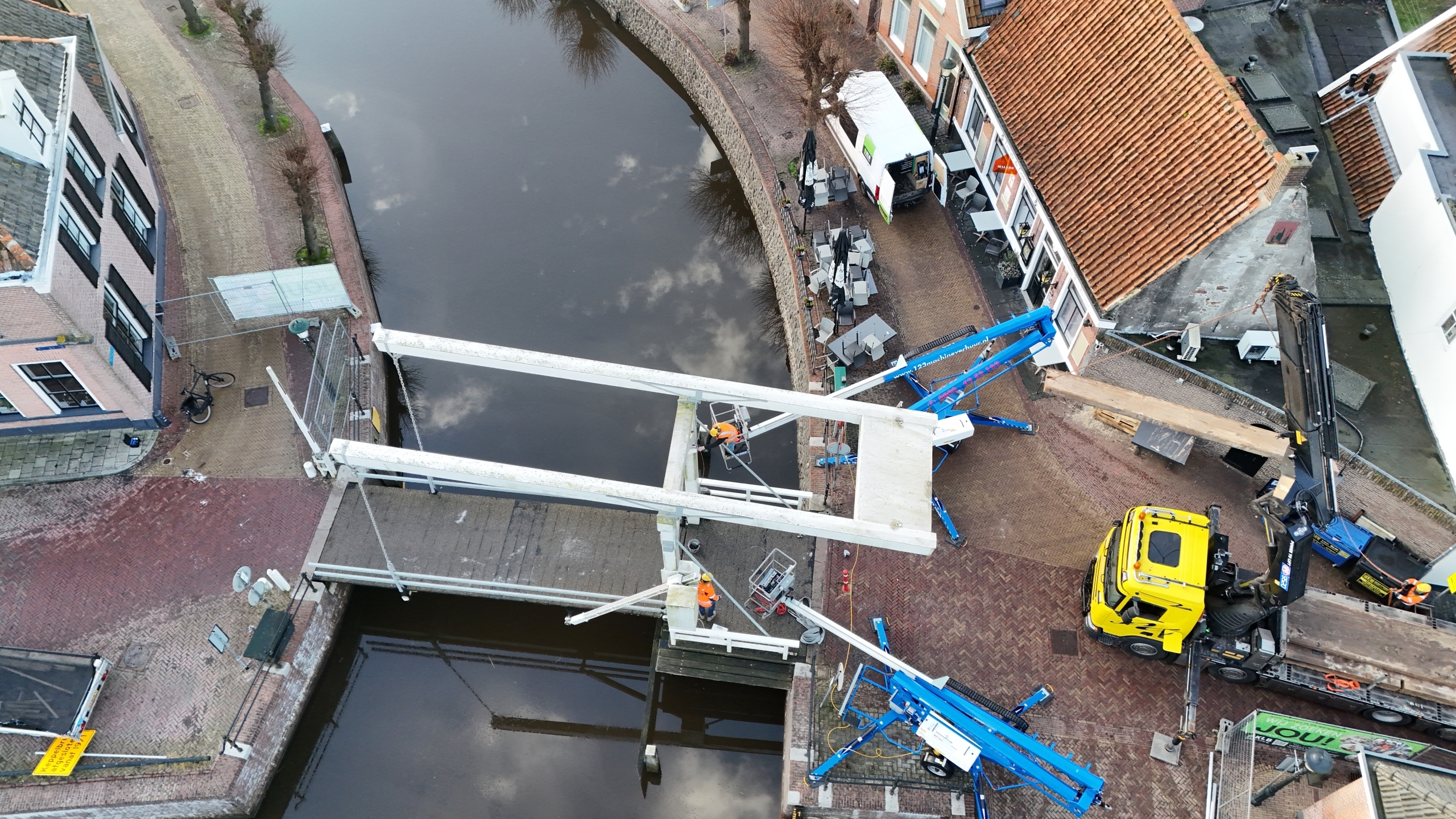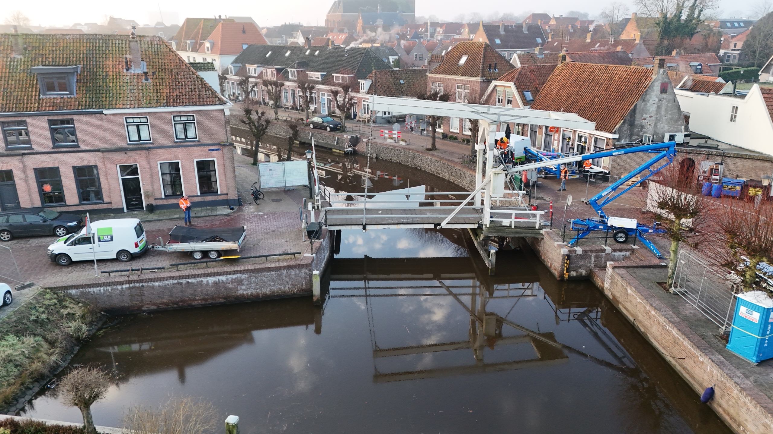 De werkzaamheden aan de beweegbare brug over de gracht bestaan in hoofdzaak uit :