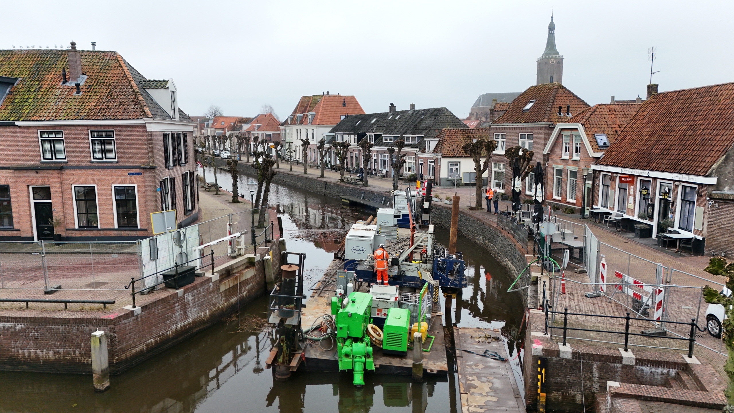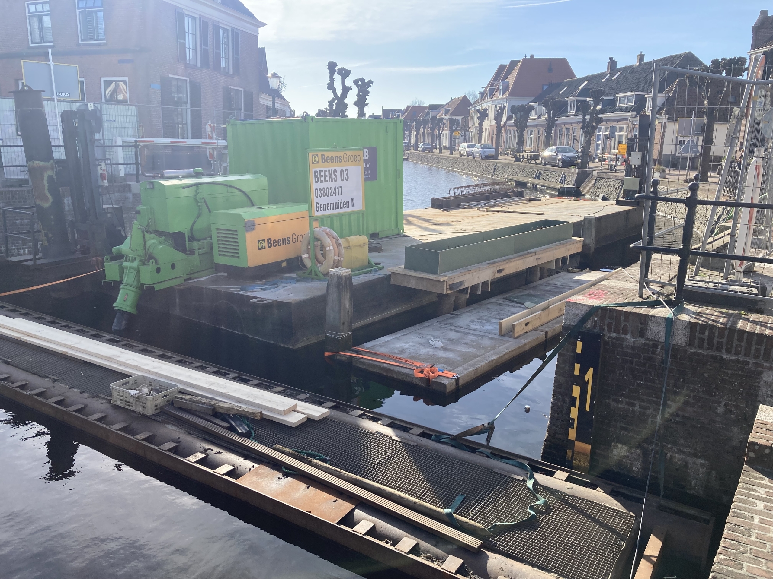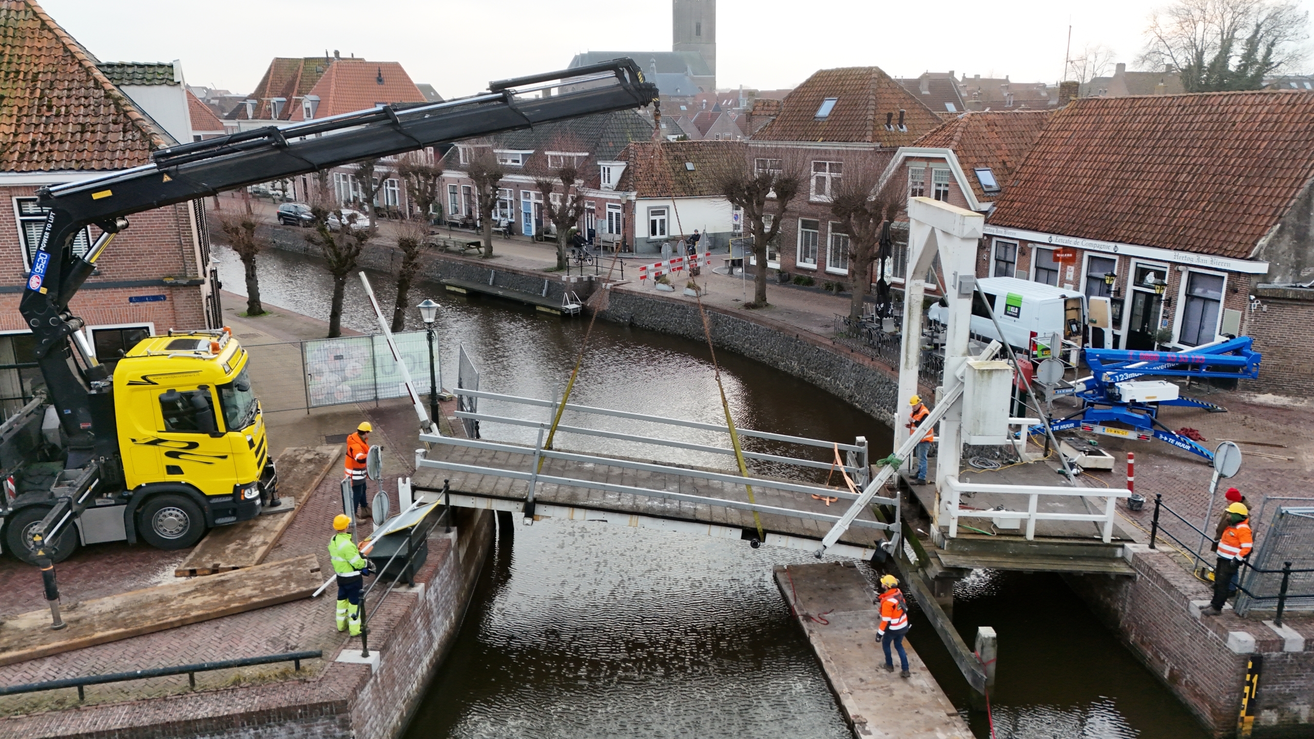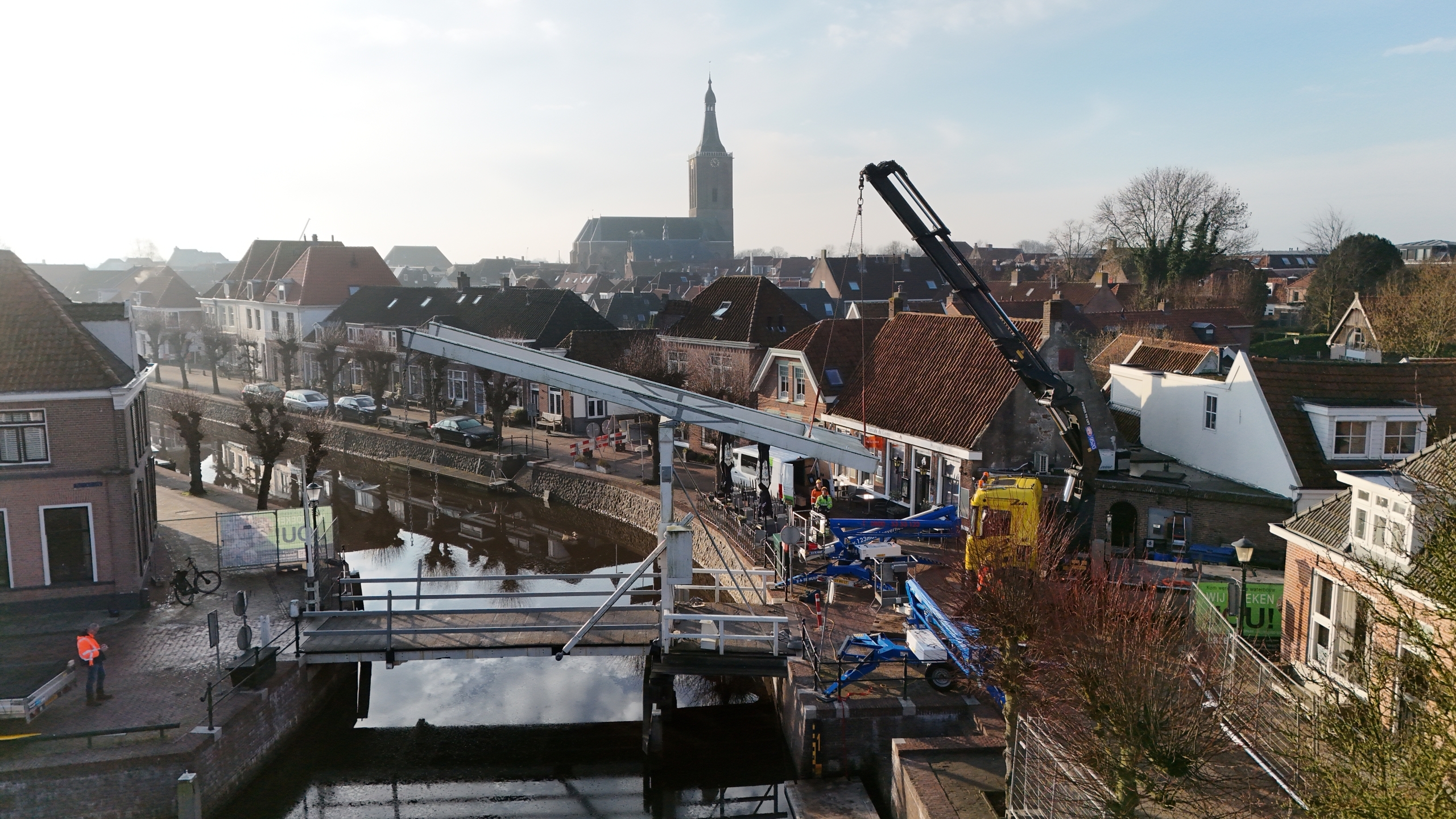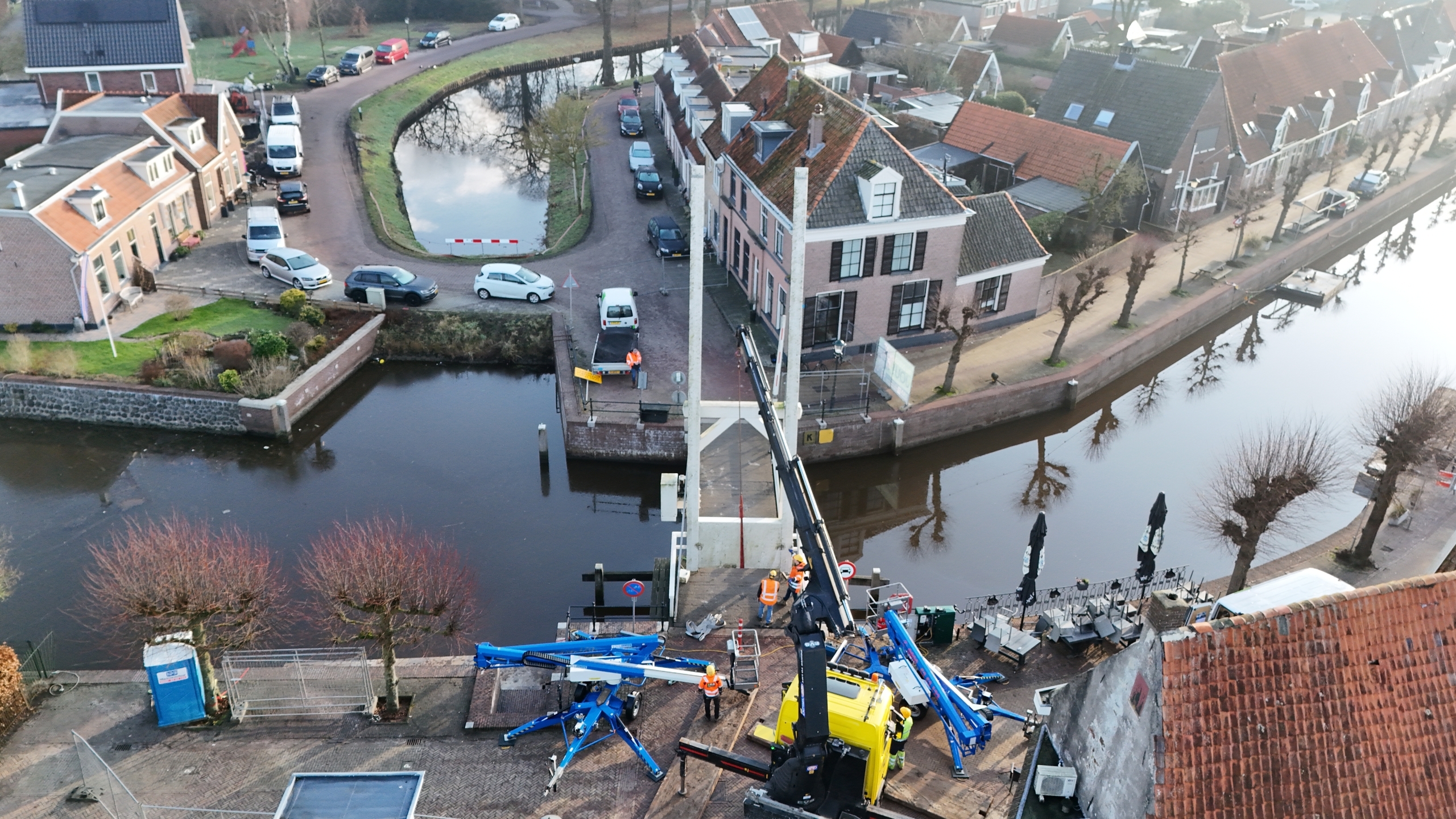 De werkzaamheden aan de beweegbare brug over de gracht bestaan in hoofdzaak uit :