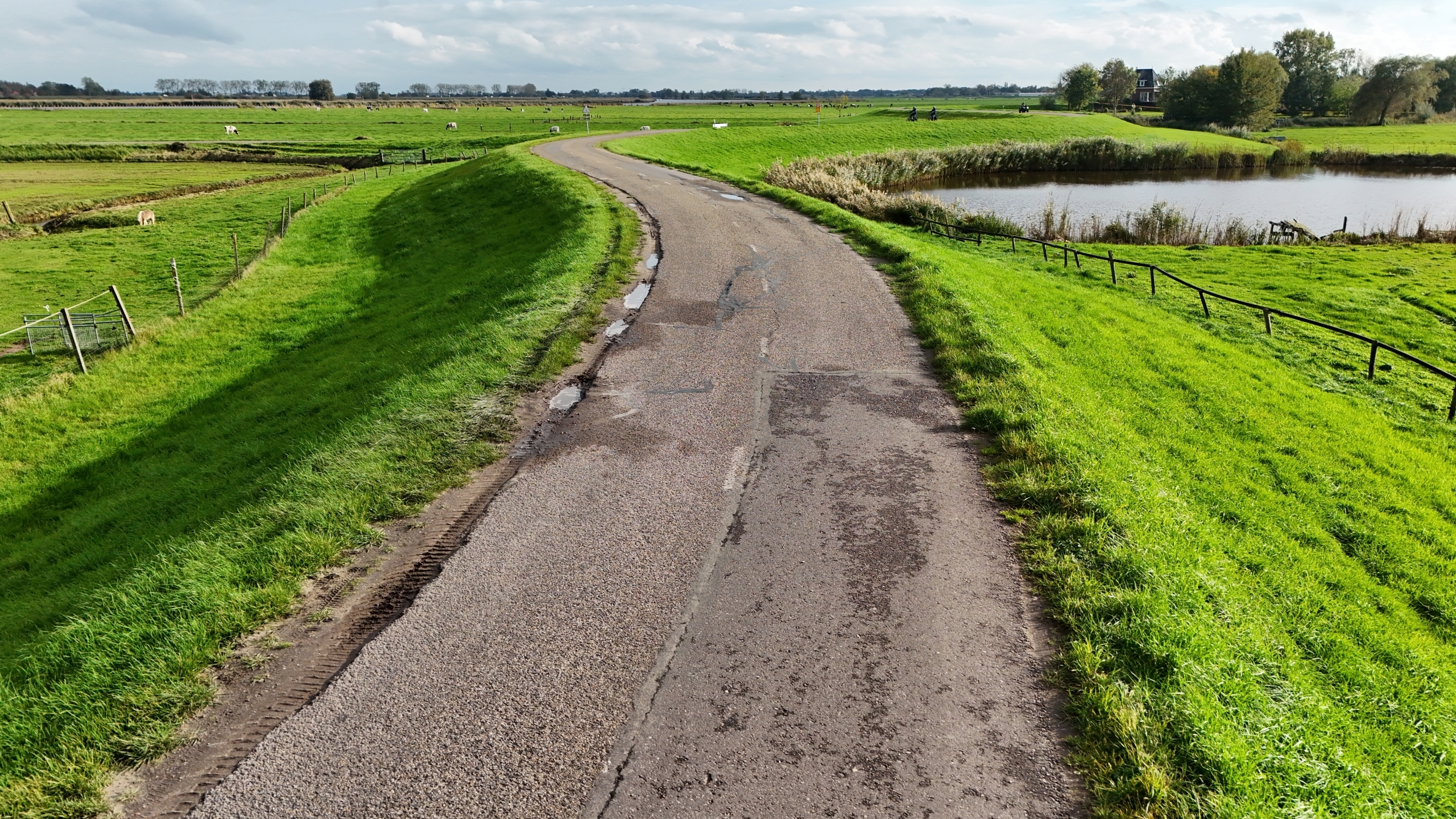 Bij de uitvoering kiezen we voor het materiaal dat bij een uitgebreide test als beste naar voren kwam. In 2017 legden we op de dijk een aantal proefvakken aan. Daaruit bleek dat asfalt met een soort gewapende fundering het best presteerde. Daarom graven we straks de dijk eerst een deel af, waarna we de puinfundering aanbrengen en daarna gaan asfalteren.