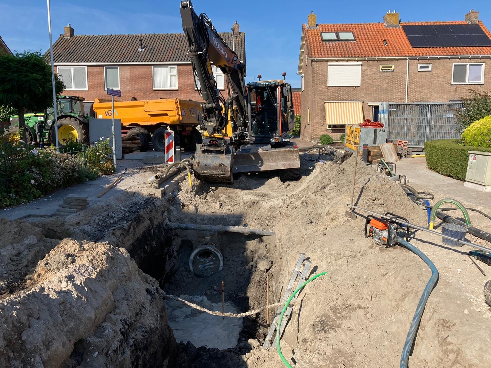 Tijdens het eerste deel van de werkzaamheden wordt een nieuw riool aangelegd. Er komt een buis voor het vuile water en één voor het regenwater.