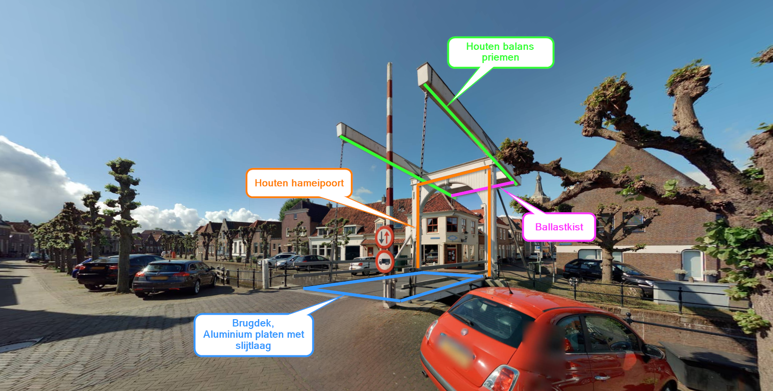 De Verlaatsbrug is aangetast door houtrot. Het is daarom niet meer veilig om de brug te bedienen voor het vaarverkeer. We zijn blij dat we 2 aannemers hebben gevonden die op korte termijn het onderhoud kunnen uitvoeren. Dat maakt het mogelijk om de brug bij de start van het vaarseizoen weer te bedienen. We laten de hameipoort vervangen en renoveren de balanspriemen. Verder vervangen we het wegdek van de brug. Het kunststof brugdek vervangen we voor een aluminium brugdek.