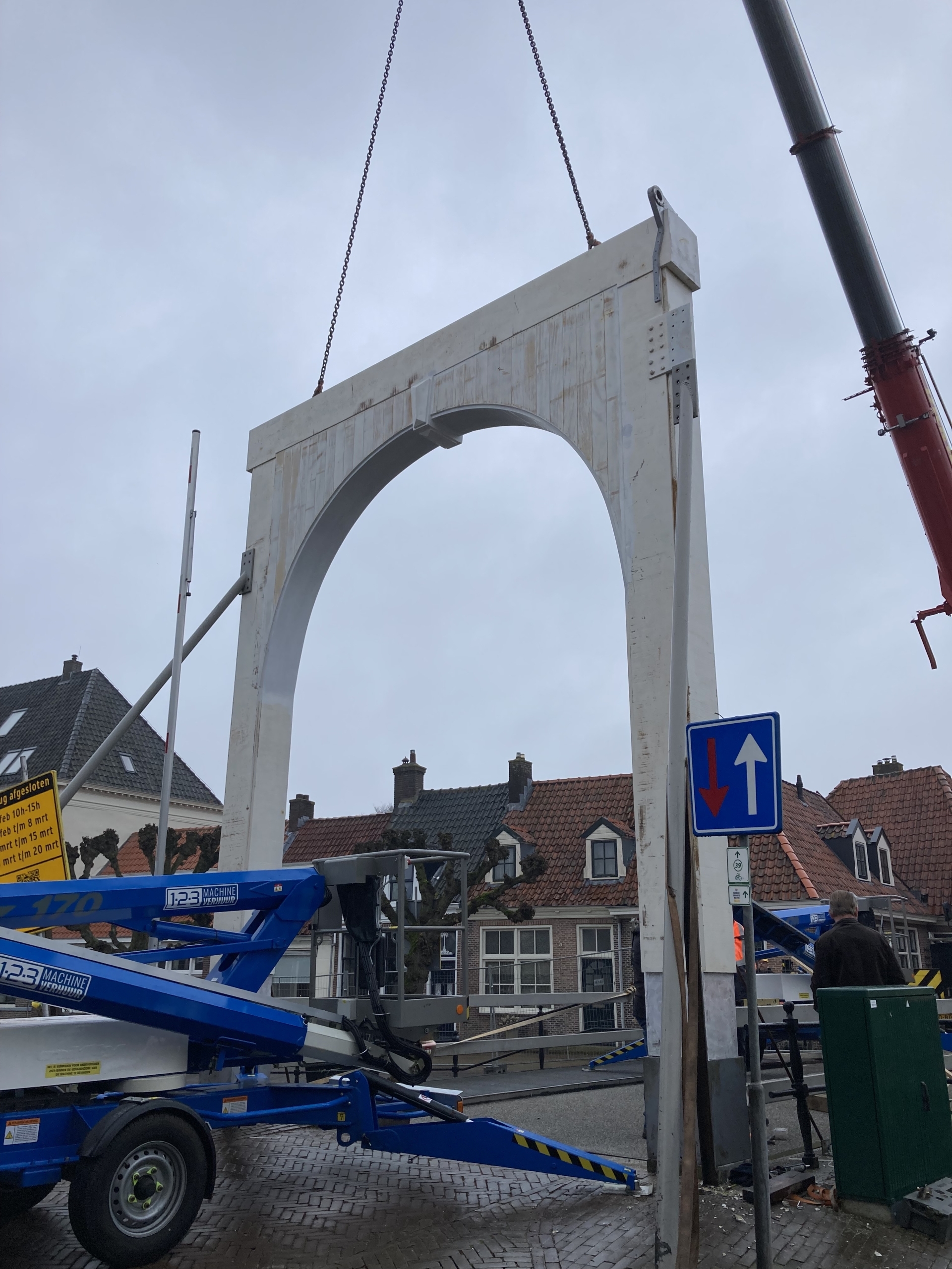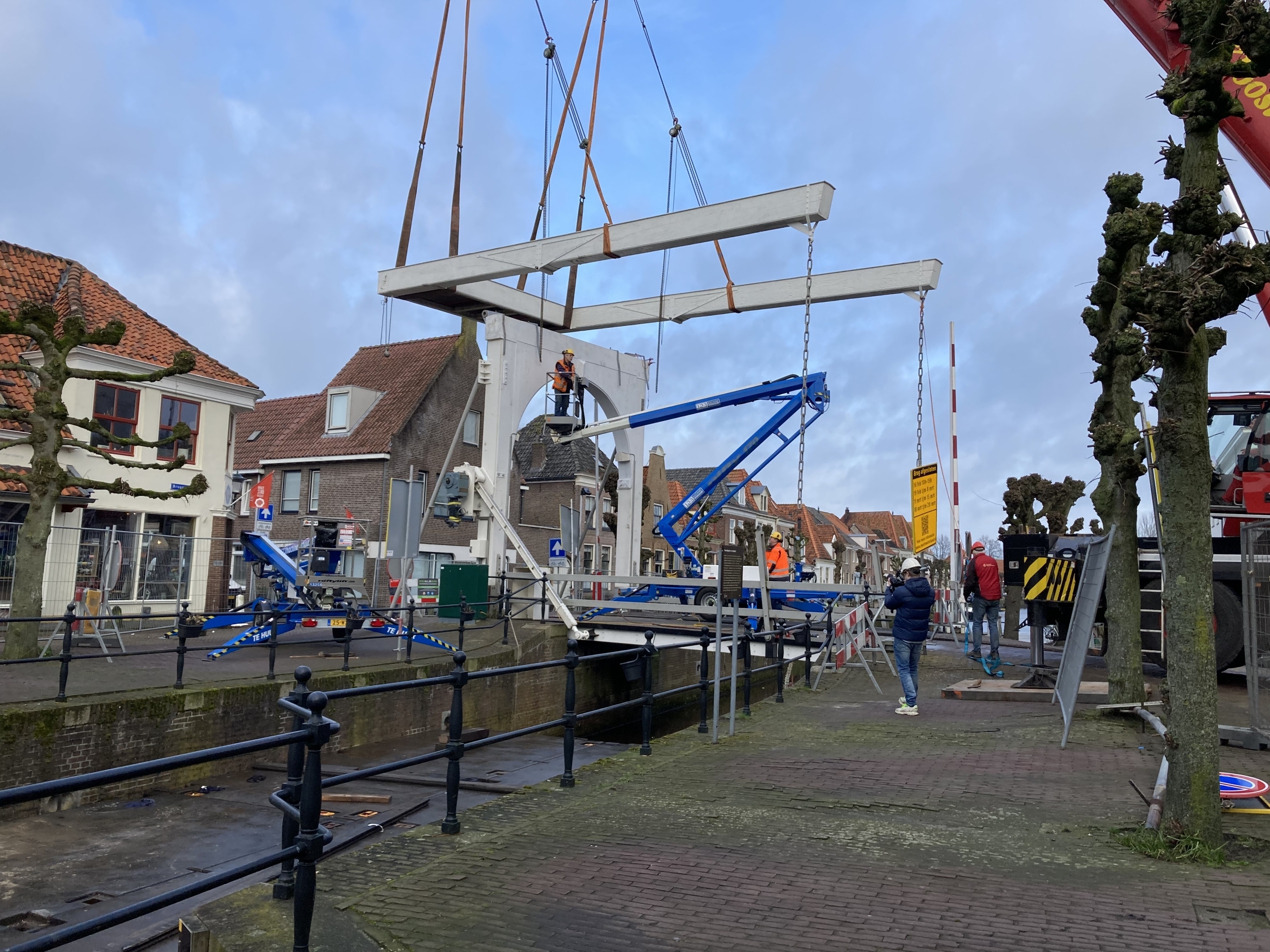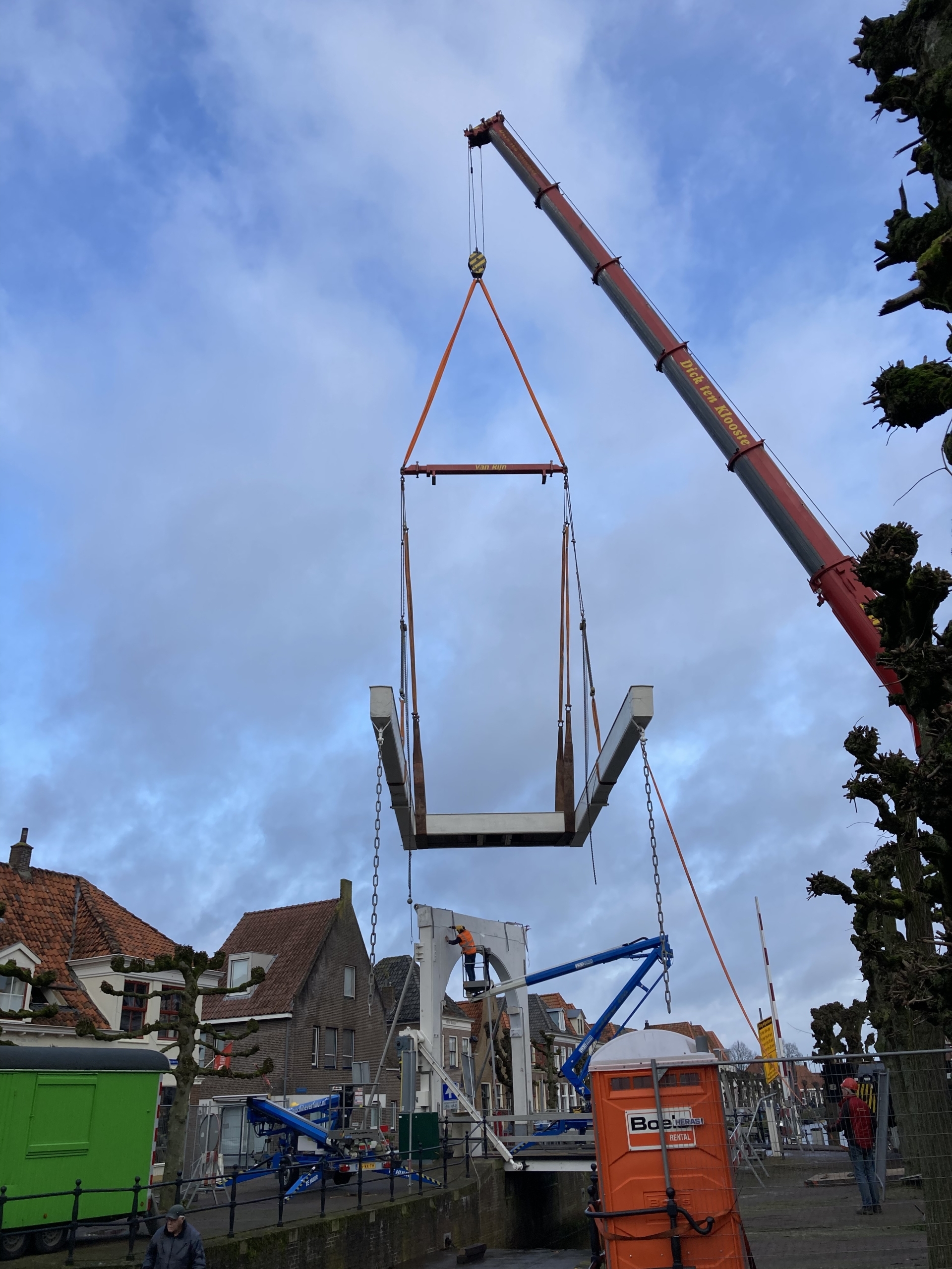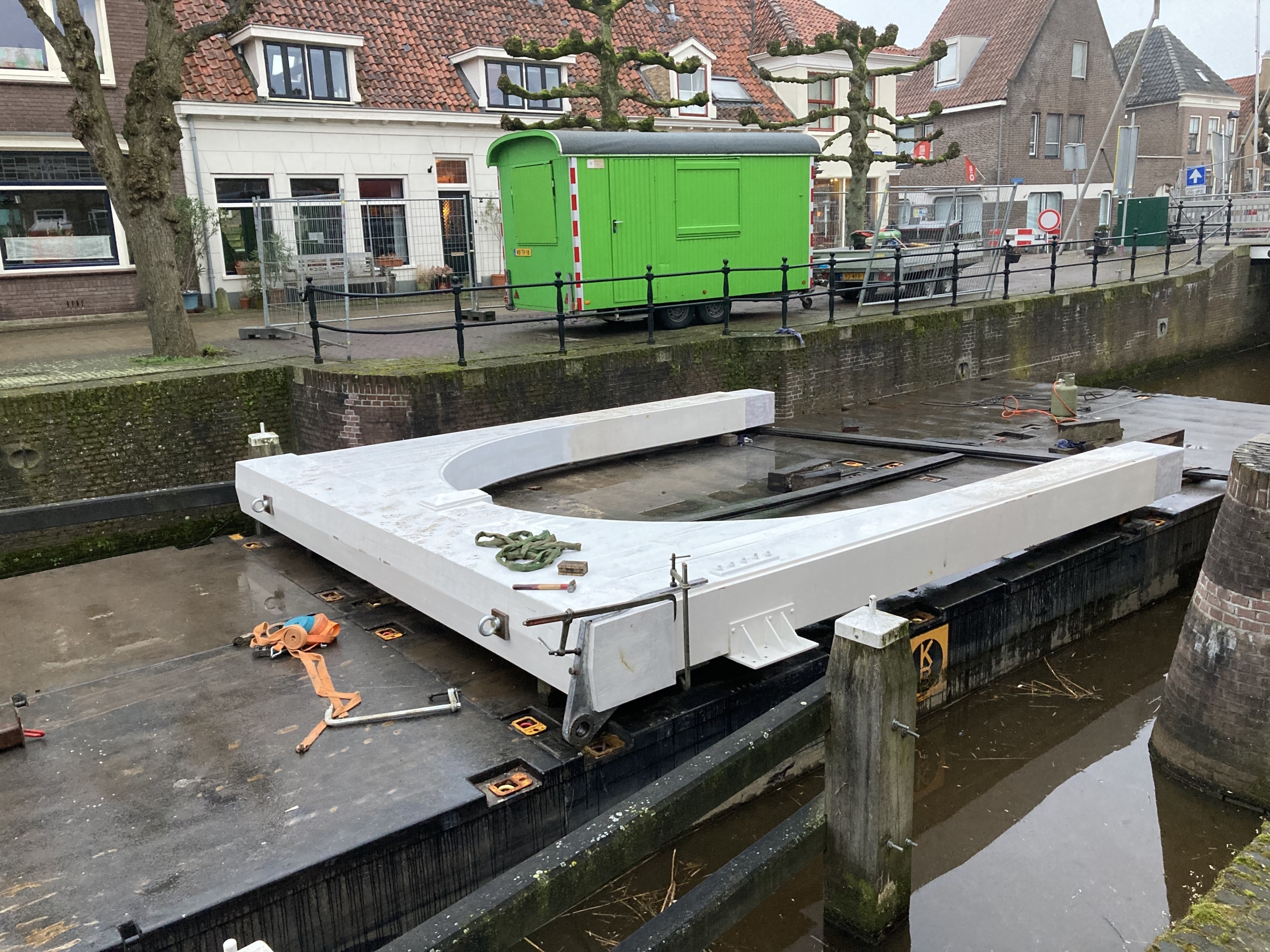 De houten opbouw van de brug vervoeren we in de week van 12 februari via het water tijdelijk naar deze plek. Na afronding van de werkzaamheden aan deze opbouw wordt de opbouw op 15 maart teruggeplaatst op de Verlaatsbrug.