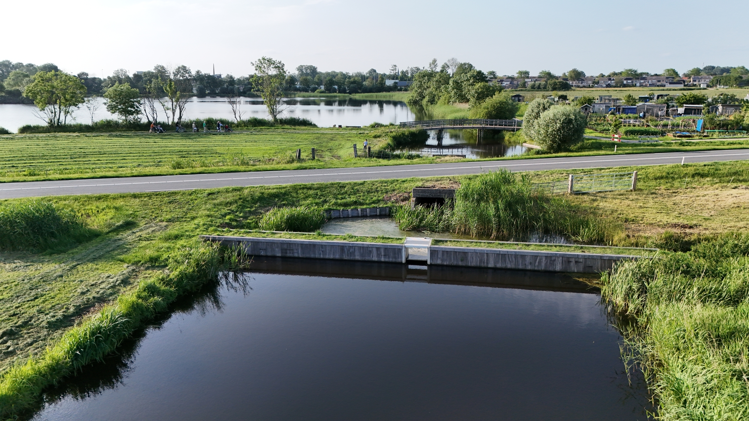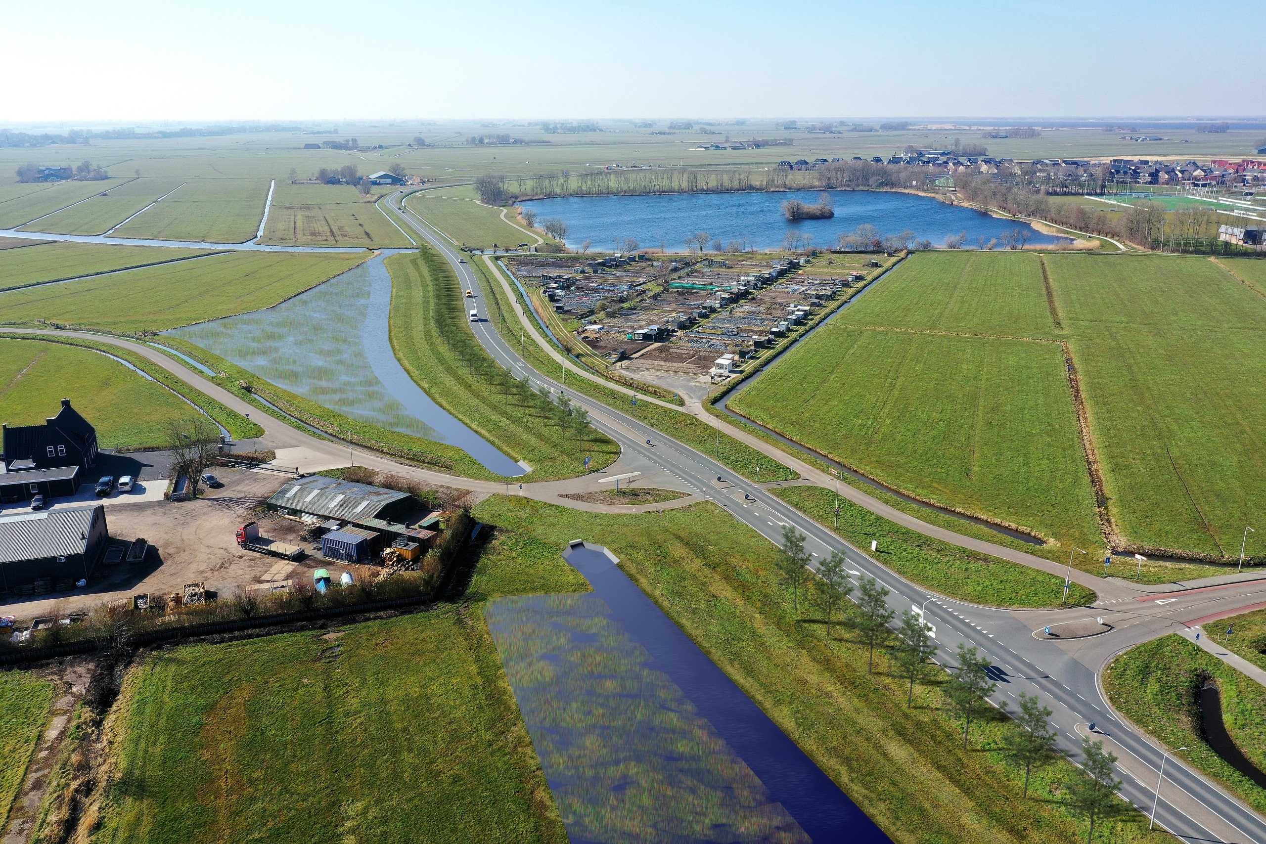 De watergang loopt straks parallel aan de zuidkant van de Randweg. Het water gaat via twee duikers onder de weg door. Langs het water komt een schouwpad. Of de nieuwe waterloop ook kansen biedt voor bijvoorbeeld een wandelpad onderzoeken we nog.